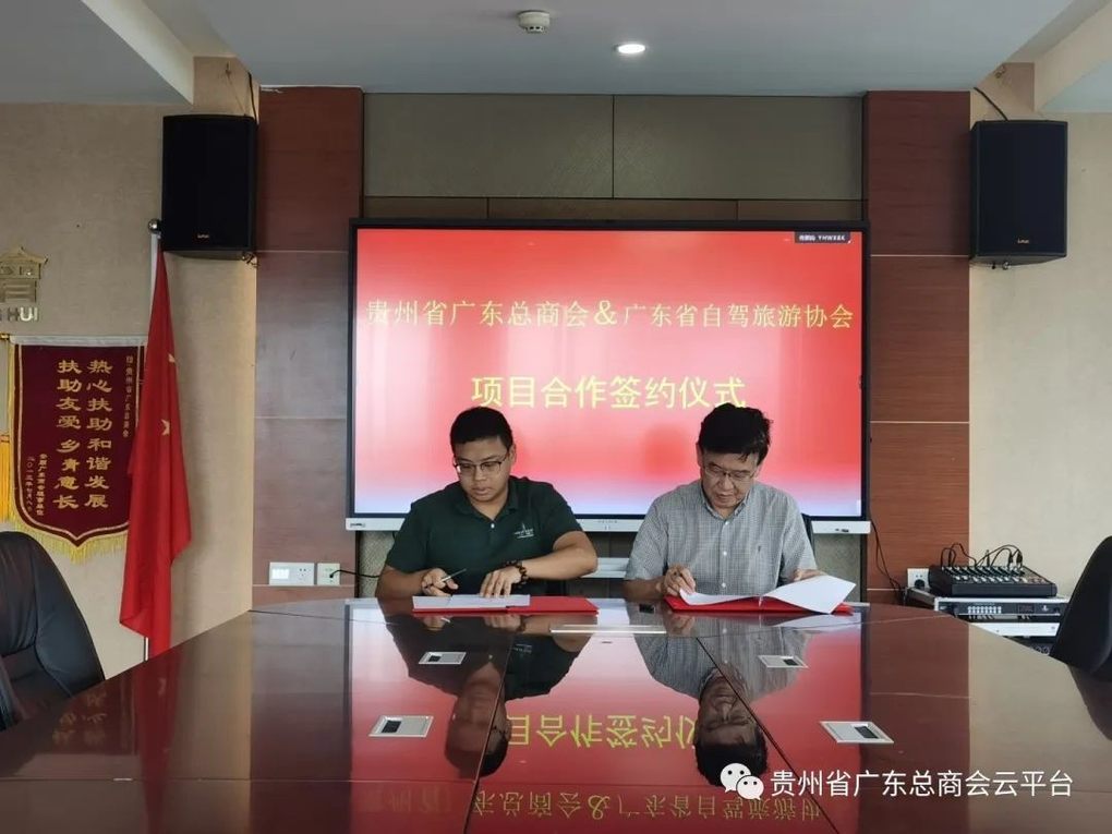 7月14日,为深入推进“乡村振兴·万企兴万村”行动,广东省自驾游协会和贵州省广东总商会签订了粤商入黔自驾旅游合作协议。通过加强资源统筹,充分发挥双方优势,以粤商自驾入黔为“突破口”,召开招商推介会、座谈会,以政策引导为“切入口”,动员广大粤商参与东西部协作工作,积极投资贵州,在助力贵州高质量发展的同时,也让广东企业探索新市场、发现新机遇。广东省自驾游协会常务副秘书长扶祖麟,我会副会长孙晨峰,秘书长金飞等参加签约仪式。
