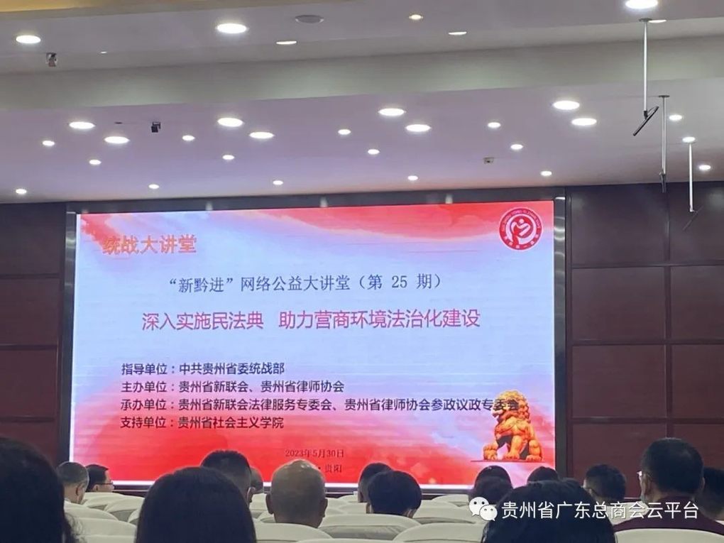 5月30日,由中共贵州省委统战部举办的“新黔进. 网络公益大讲堂-深入实施民法典,助力营商环境法制化建设”主题活动,在省社会主义学院文化楼6楼会议室举行,活动主要围绕深入学习贯彻习近平新时代中国特色社会主义思想尤其是习近平法治思想,弘扬民法典精神,助力高质量发展。我会常务副会长周兆明、副会长巫晓蔚代表商会参加活动。