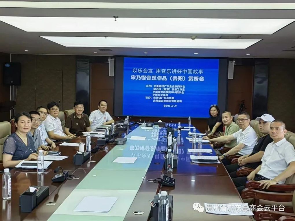 7月9日上午,用音乐讲好中国故事——宋乃裕音乐作品赏析会”在贵阳市赤天化大厦举行,知名作家、中国孝廉文化研究专家、资深媒体人、音乐人宋乃裕,贵州省广东总商会会长、贵州赤天化集团、贵州圣济堂药业集团董事长丁林洪,贵州省广东总商会秘书长金飞,贵州水云天酒业有限公司董事长宋科龙及来自北京、贵阳、成都、广州、海口、佛山、江门、珠海、湛江、雷州等地知名企业家、音乐爱好者30多人参加活动。用音乐讲好中国故事——宋乃裕音乐作品赏析会”在贵阳市赤天化大厦举行,知名作家、中国孝廉文化研究专家、资深媒体人、音乐人宋乃裕,贵州省广东总商会会长、贵州赤天化集团、贵州圣济堂药业集团董事长丁林洪,贵州省广东总商会秘书长金飞,贵州水云天酒业有限公司董事长宋科龙及来自北京、贵阳、成都、广州、海口、佛山、江门、珠海、湛江、雷州等地知名企业家、音乐爱好者30多人参加活动。