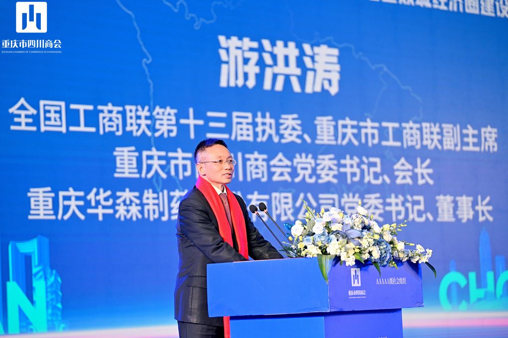 商会党委书记、会长游洪涛致辞,欢迎全球川商的到来
