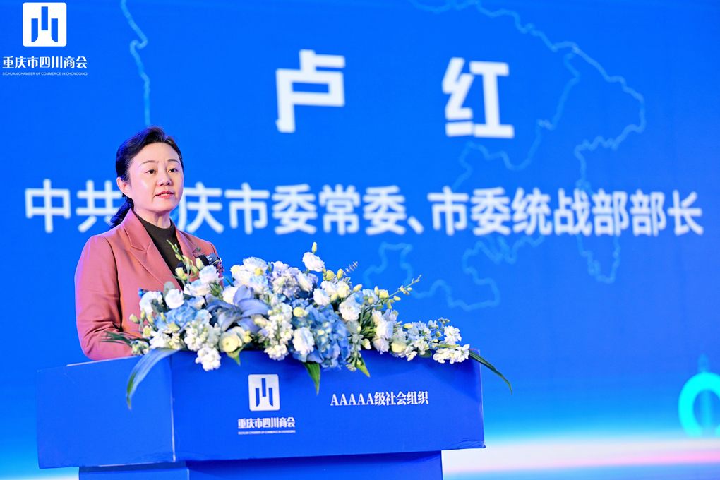 重庆市委常委、统战部部长卢红也亲临现场并讲话。卢红常委首先代表重庆市委、市政府向现场来宾表示热烈欢迎,向长期以来关心支持川渝发展的海内外川商渝商致以诚挚问候。