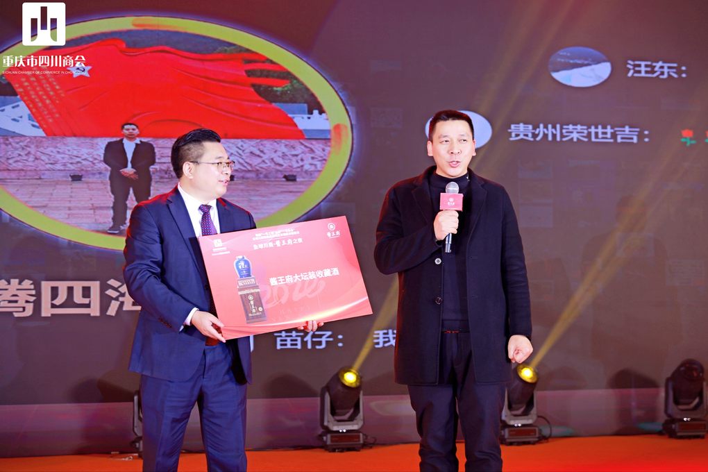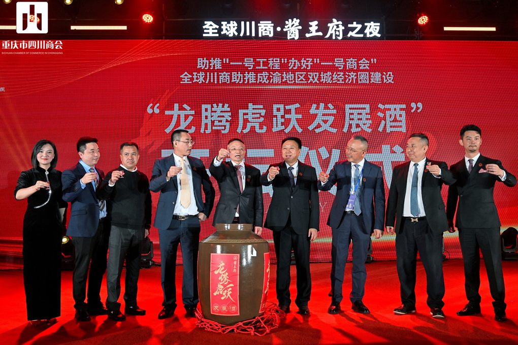 晚上,商会联合联席会长单位——贵州仁怀酱王府酒业(集团)有限公司共设全球川商·酱王府之夜晚宴,邀请全部与会嘉宾共同庆贺全球川商助推成渝地区双城经济圈建设启动大会成功举办。